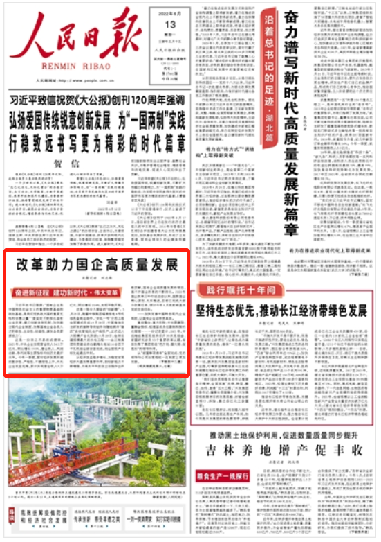人民日?qǐng)?bào)頭版刊發(fā)《改革助力國(guó)企高質(zhì)量發(fā)展(奮進(jìn)新征程 建功新時(shí)代·偉大變革)》