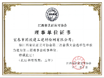 祝賀宜春市國(guó)投建工建材檢測(cè)有限公司當(dāng)選為江西省認(rèn)證認(rèn)可協(xié)會(huì)第三屆理事會(huì)理事單位